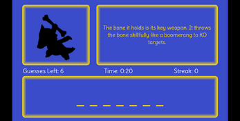Play by typing: guess letters to reveal the Pokémon’s name. Streaks bump up your max guesses.
